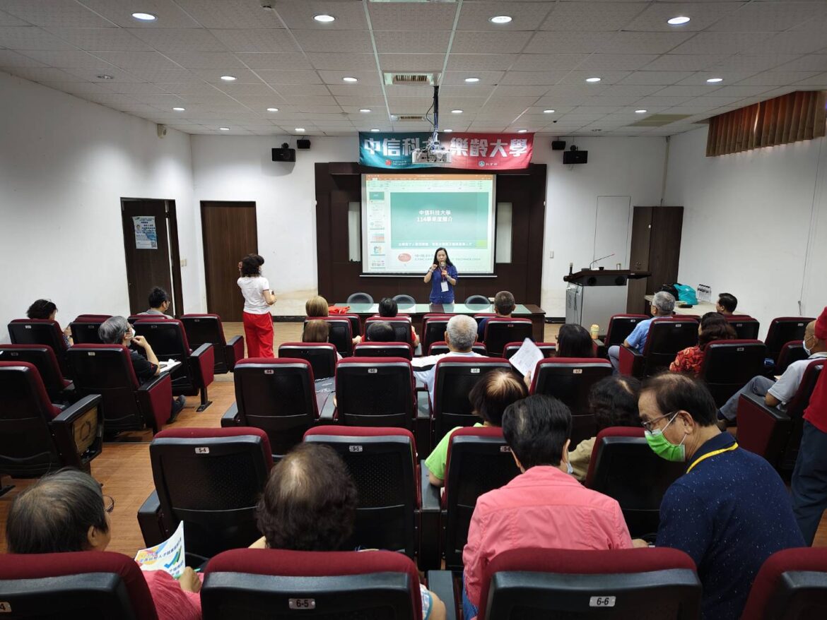 中信科技大學與臺南市政府勞工局職訓就服中心攜手合作,今(17)日在中信科大辦理今年最後一場就業促進講座,包含臺南市銀髮人才服務據點翁秋鈴站長、雲林縣銀髮人才服務據點詹惠君執行長、中信科大樂齡大學學員,以及40多位臺南市中高齡有就業意願的民眾熱情參與。