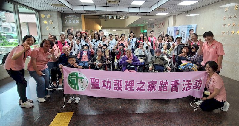在秋陽和煦、微風輕拂的下午,活動由院牧室關懷員帶領大家祈禱祝福展開。隨後,所有的工作人員與護家長輩在院內一樓門診大廳合影留念,記錄這溫馨的一刻。