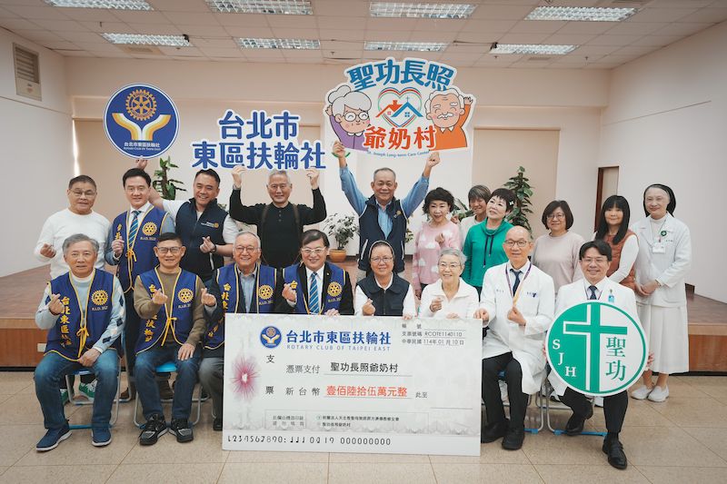 公益善行,溫暖不斷,此次台北市東區扶輪社捐助新台幣165萬元,捐贈活動由社長潘建誠代表捐贈,天主教聖功醫療財團法人執行長楊儀華修女及聖功醫院院長劉文欽醫師代表受贈。