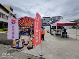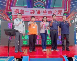 大港興快樂捐血放暑假傳遞愛幸福公益活動,現場有薩斯風表演;愛心送關懷大華、鳥松、夢裡三里物資發放