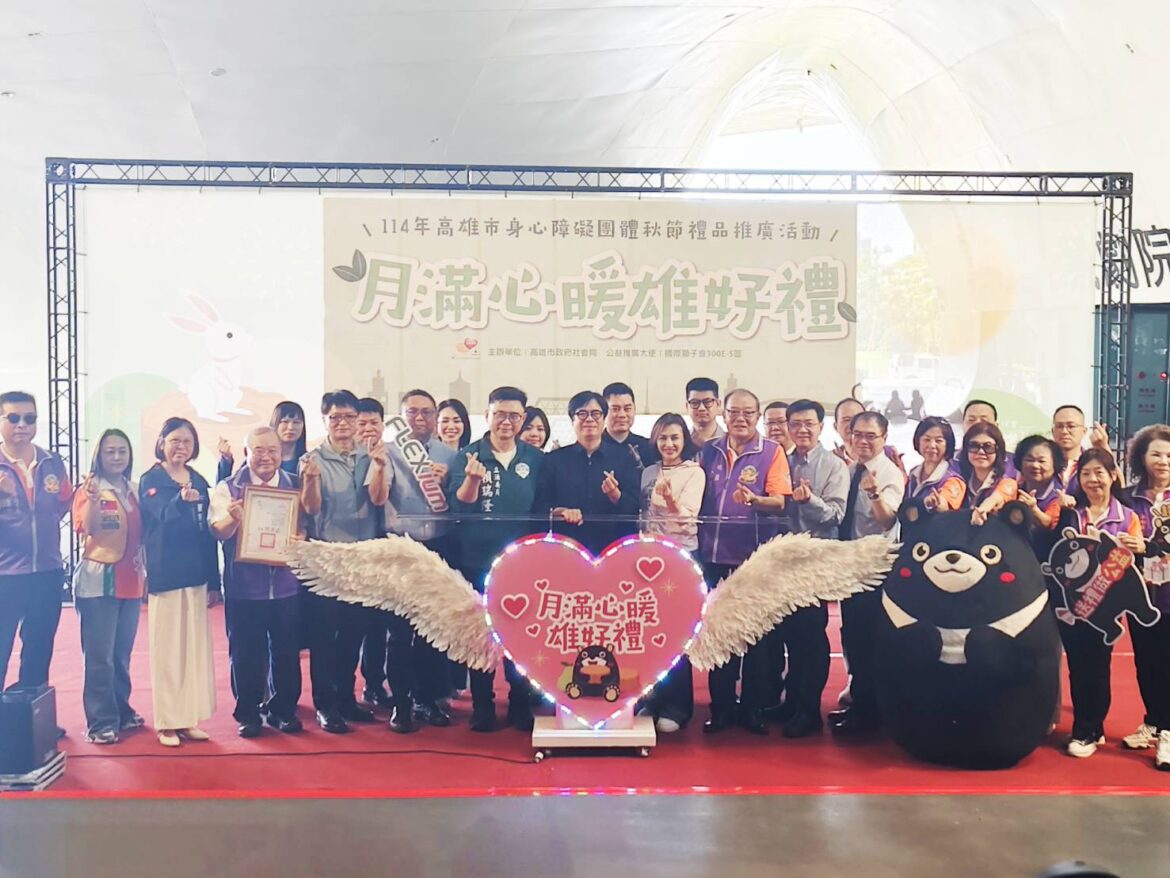 高雄市政府今(16)日於衛武營榕樹廣場熱鬧舉辦「月滿心暖,雄好禮」中秋禮品推廣活動,集結23家身心障礙團體聯合展售百項中秋禮盒,從月餅、鳳梨酥到手工蛋捲、文旦、咖啡、手工皂等應有盡有,吸引大批市民到場選購。市長陳其邁去年認購1,000盒,今年再加碼至1,200盒,用行動力挺身障團體,並呼籲企業與市民朋友「送禮更送愛」,用行動支持身障朋友自立生活。