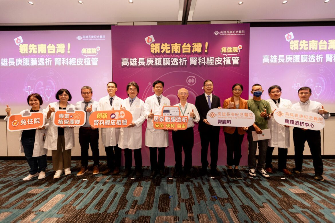 台灣末期腎臟病發生率高居全球首位,透析盛行率更是居高不下,根據健保署資料,目前每年約有9萬人接受透析治療,但選擇腹膜透析者僅約6千多人,比例未達1成。響應國家加強推動腎臟照護與腹膜透析政策,高雄長庚紀念醫院、高雄市立鳳山醫院及高雄市立大同醫院,由李建德院長帶領於28日舉辦記者會,邀請高雄市政府衛生局黃志中局長;中華民國腹膜透析腎友協會吳鴻來理事長;腹膜透析病友代表黃先生與會,傳遞透析治療新趨勢,分享高雄長庚開創腹膜透析免住院腎科經皮植管新模式的成果。