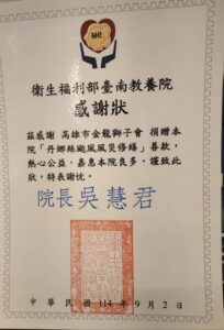 在第一時間響應的是高雄市金龍獅子會。會長張孟傑號召獅友發起募款,並於9月2日親自帶隊到院區致贈善款與物資,傳遞關懷與信心。院長吳慧君代表受災單位接過這份援助,表示這不只是金錢上的挹注,而是災後重建、穩定人心的重要力量。獅子會的這道暖流,讓院內職員與家屬感受到社會的陪伴與支持。