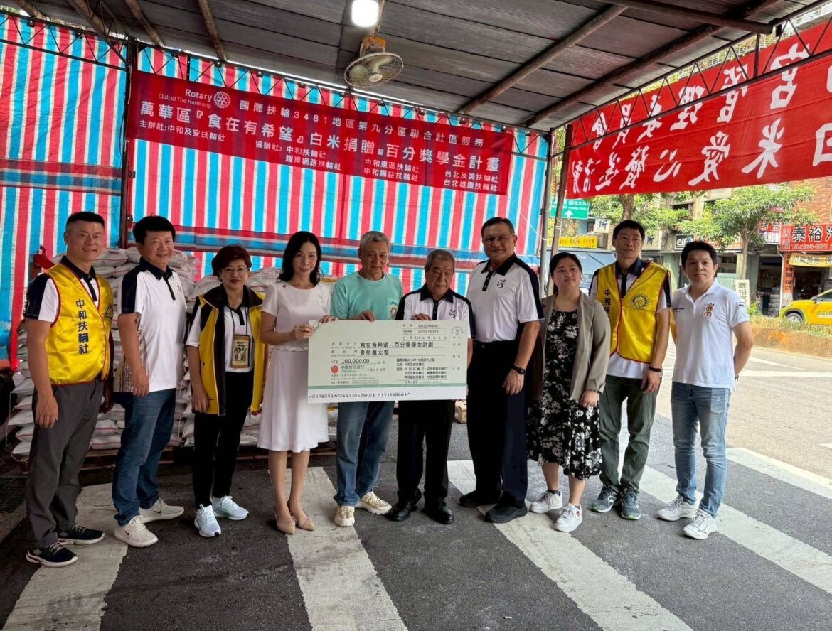 114年9月4日,「中和及安扶輪社」主辦、國際扶輪3481地區第9分區共同參與的「萬華食在有希望」白米捐贈暨百分獎學金聯合服務活動,在萬華雙福宮熱情舉行,現場聚集眾多民眾與社友,共同見證這場愛心公益行動。