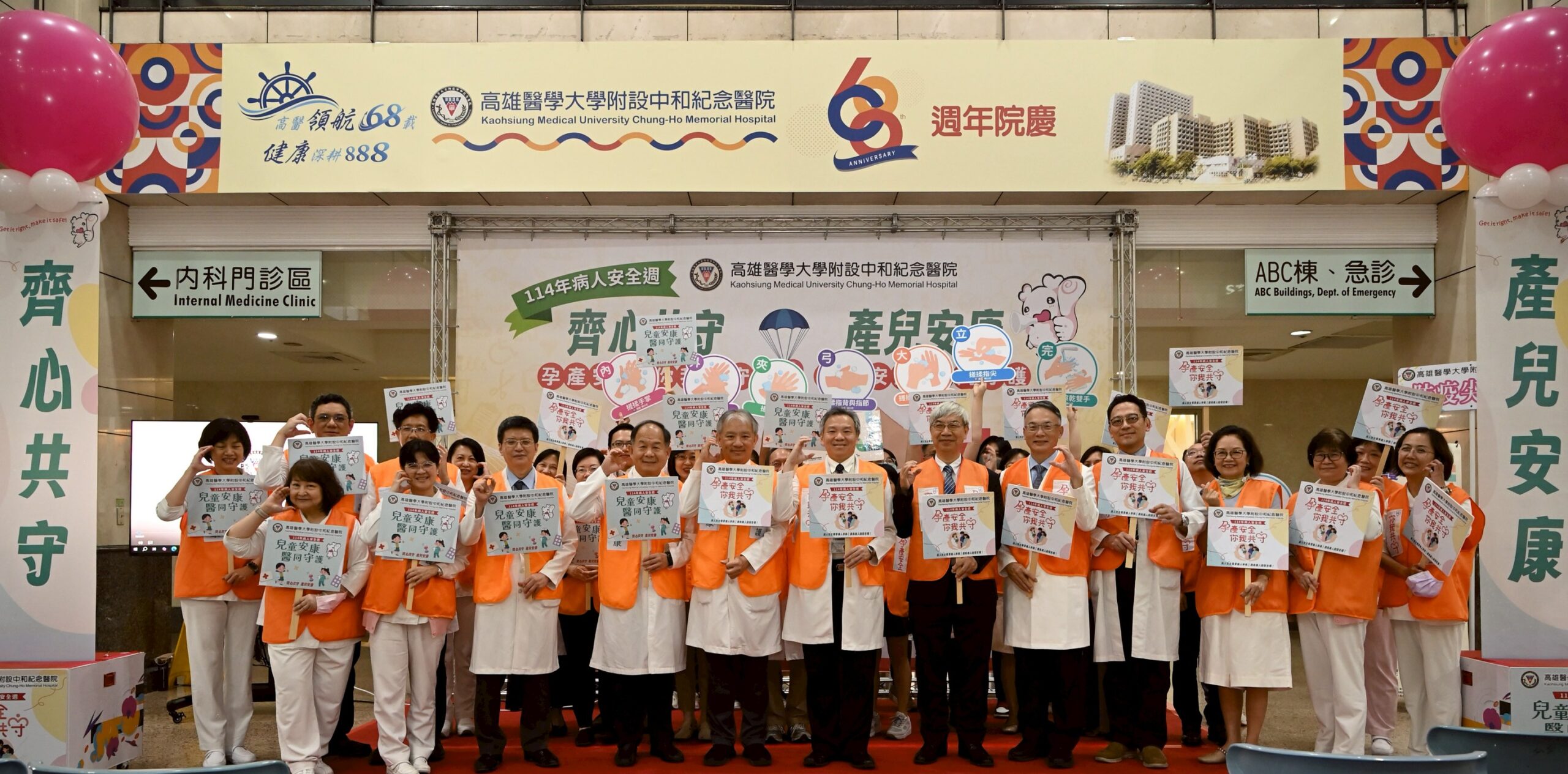 為響應世界衛生組織(WHO)倡議的「世界病人安全日」,衛生福利部號召全台醫療院所共同響應推動病人安全日活動,高雄醫學大學附設中和紀念醫院(以下簡稱高醫)今(17)日由院方首長親自帶領團隊,以南北呼應方式展現決心,正式宣告「2025年病人安全週」開跑,並誠摯邀請全體同仁與民眾共同響應。因為即使在醫療科技高度發展的今日,懷孕與分娩依舊存在高度風險,特別是產後大出血、子癲癇症與妊娠高血壓等仍是嚴重威脅孕產婦的安全,在少子化危機加劇的台灣,如何守護母嬰安全更顯刻不容緩。高醫以「孕產安全.你我共守」及「兒童安康.醫同守護」為主題,呼籲病人安全意識應從孕育新生命的第一天開始,並一路延續至孩子成長的每一步,讓守護成為全民共識。