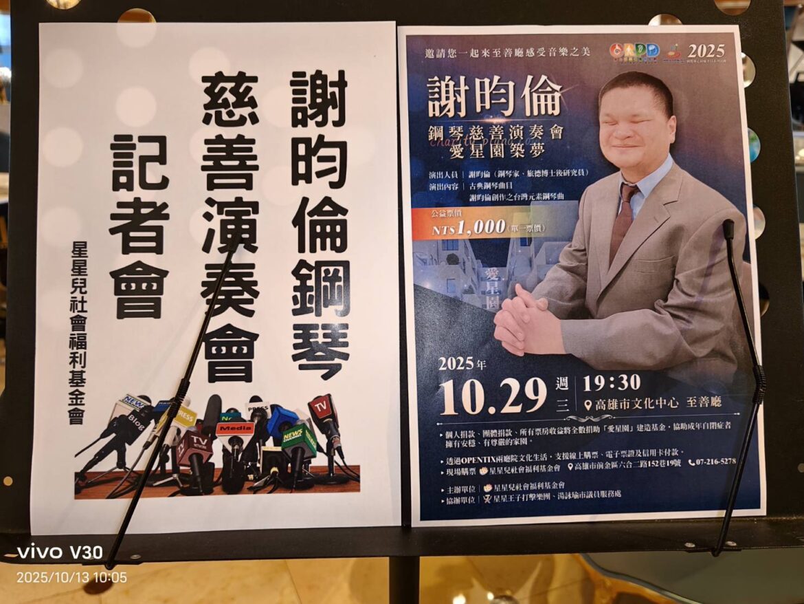 在這個充滿溫度的秋夜,高雄即將迎來一場以愛與音樂交織的盛宴。星星兒社會福利基金會宣布,將於 2025年10月29日晚間7點30分 在高雄市文化中心至善廳舉辦「謝昀倫鋼琴慈善演奏會:愛星園築夢」。