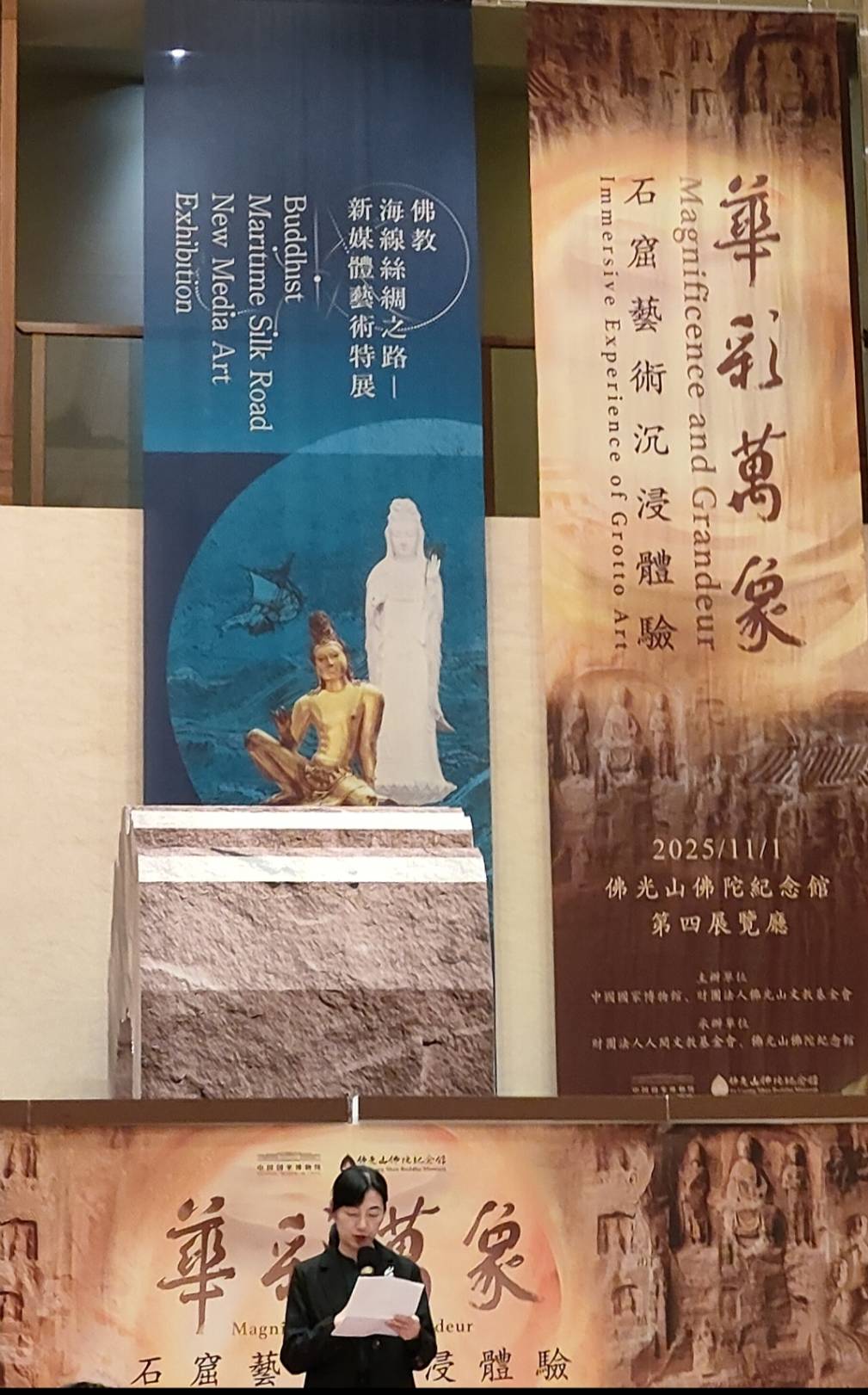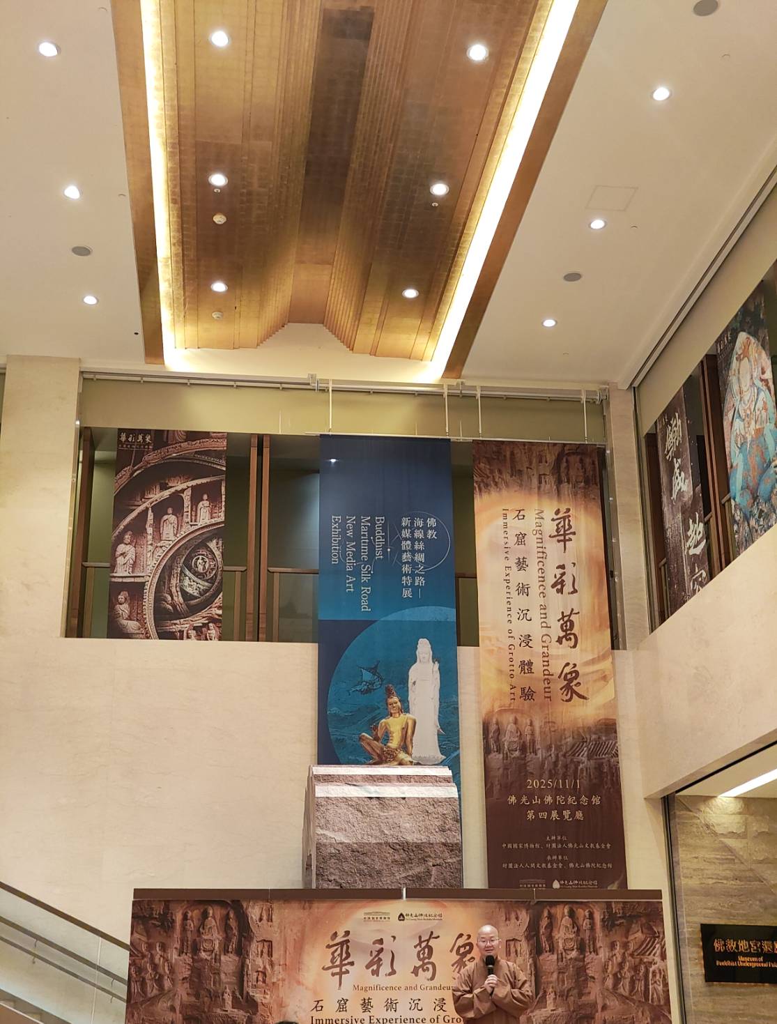 11月1日,“華彩萬象—石窟藝術沉浸體驗”在佛光山佛陀紀念館本館大堂盛大開幕,350位兩岸各界人士、學者及藝文代表共同見證這場文化盛宴。展覽由中國國家博物館與佛光山文教基金會聯合主辦,以高科技賦能傳統文化,將克孜爾、敦煌莫高窟、麥積山、雲岡、龍門五大世界遺產石窟“搬”進展館,讓千年藝術不再遙遠。