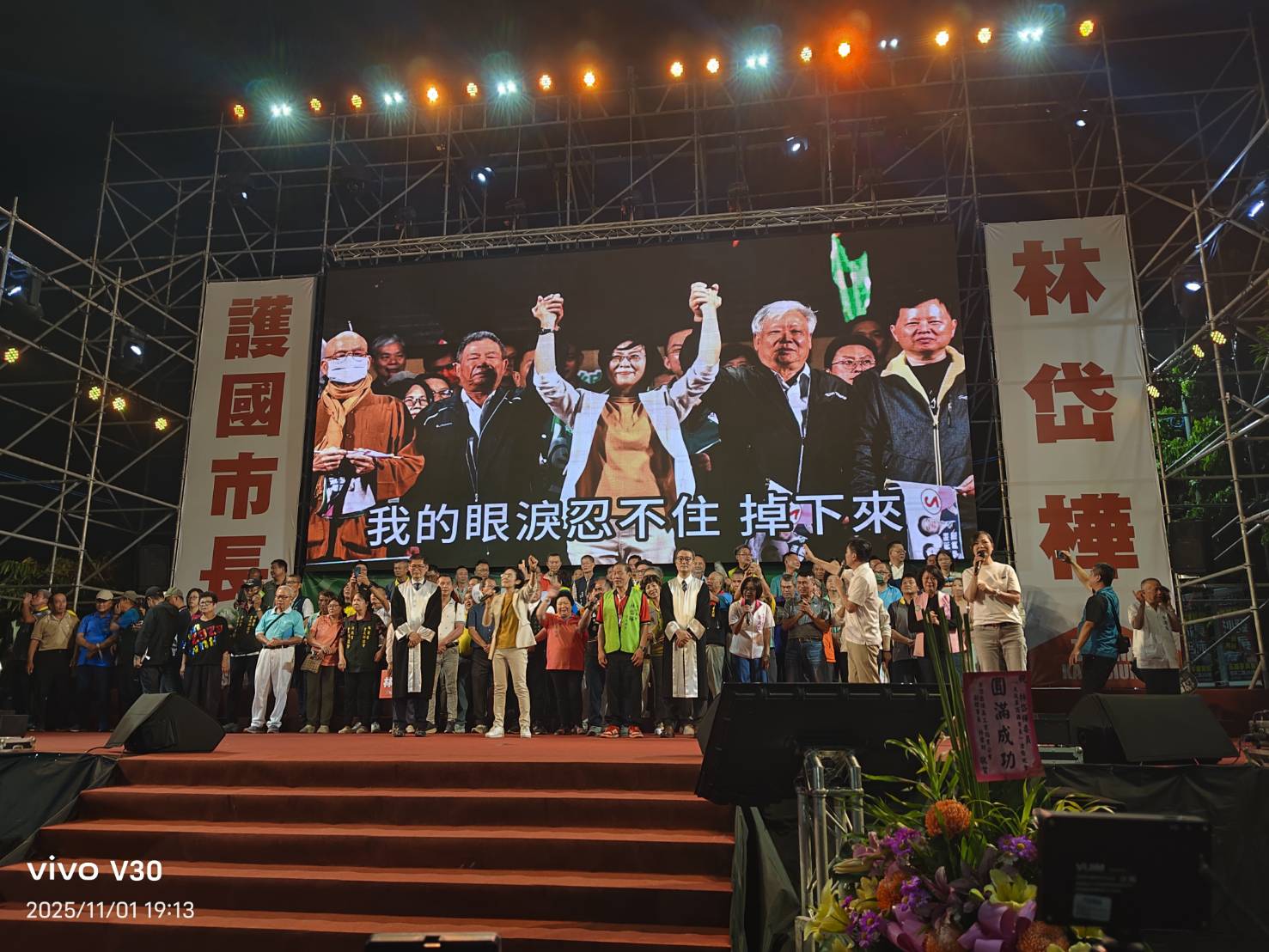 林岱樺當晚登台後深深三鞠躬,表達對現場滿溢支持者的感謝,在演講過程中數度哽咽落淚,表示自己是受到鄉親的鼓勵參選公職,也強調自己25年來深耕高雄,將所有青春與氣力全數奉獻給市民。