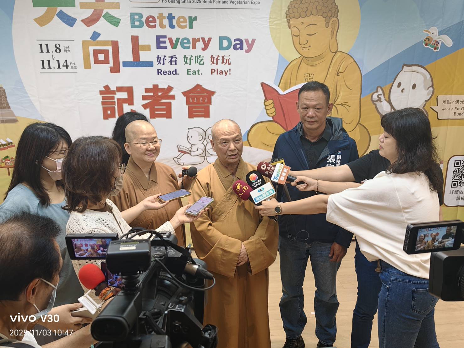佛光山常務副住持慧傳法師表示,書展精神延續星雲大師「讀做一個人,讀懂一顆心」理念,閱讀不是只有知識,更是心性與慈悲的養成,願每位參與者都能在書展中找到「生活向上」的方向。