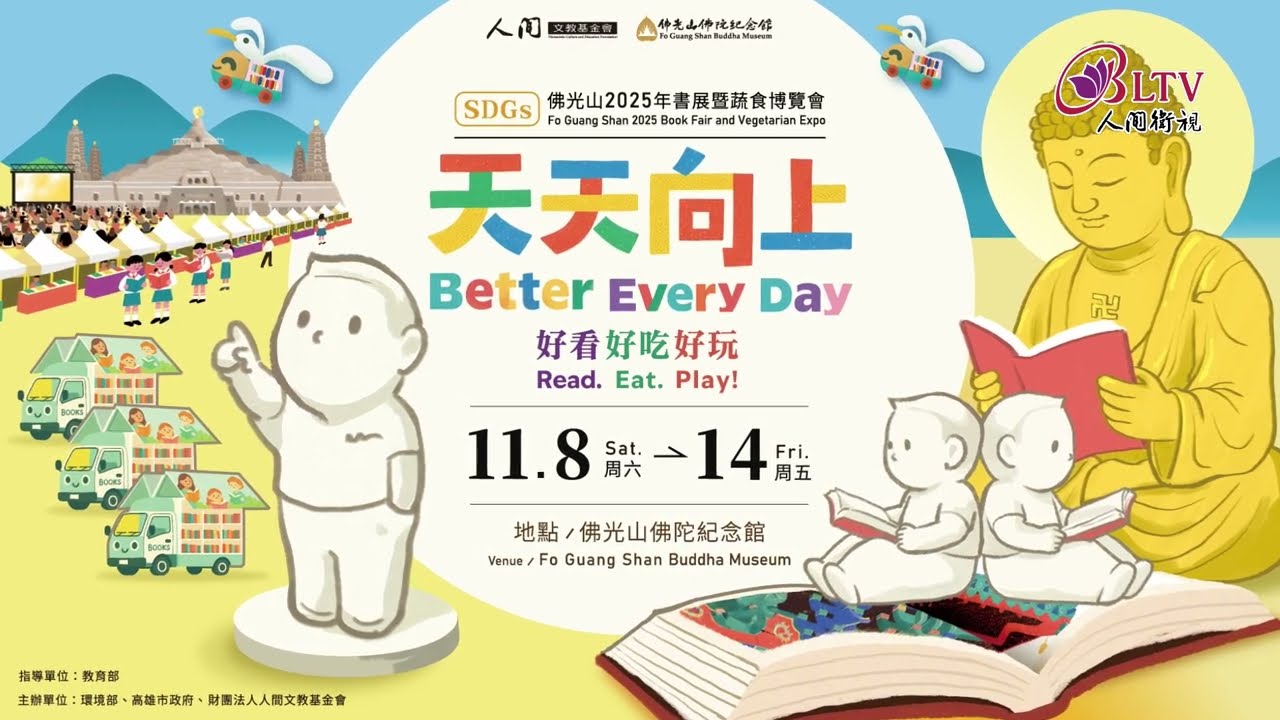 深秋甫至,佛光山佛陀紀念館再度以書香迎人。今年「佛光山2025年書展暨蔬食博覽會」將於11月8日至14日於佛館盛大展開,由高雄市政府與人間文教基金會共同主辦,以「天天向上‧好看好吃好玩」為年度主題,呼應國際「世界純素月」(World Vegan Month),以閱讀、蔬食與永續生活為三大主軸,引領民眾在豐富展覽與活動中體會慈心、健康與文化的共善之路。今年除延續偏鄉捐書與校外教學推廣,更透過藝術體驗、新媒體展陳、手作體驗與蔬食市集,讓參與者在知識與生活之間,看見文化的溫度與城市的呼吸。
