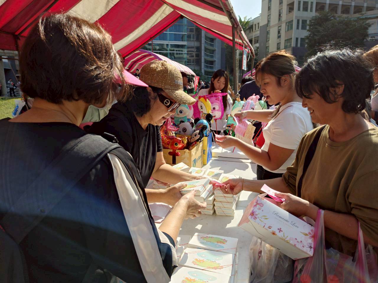 園遊會現場設置超過50個美食、遊戲與服務攤位,由企業、社團與志工團隊投入人力與物資。美食區一早便香氣四溢,炸物、麵食與甜點交織成專屬年味;義剪與按摩攤位前排起長龍,讓平日忙於生計的家長獲得片刻放鬆;命理諮詢與親子手作區同樣人氣滿滿。特邀畫家現場進行「似顏繪」,細膩描繪親子合影,為家庭留下難得的歲末紀念。