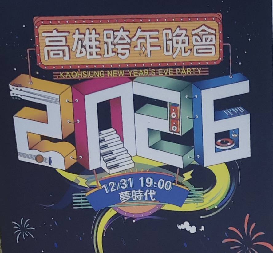 市府表示,今年主視覺貫穿線上宣傳、戶外看板、跨年舞台設計、官方周邊,將帶給觀眾更一致、更沉浸式的跨年參與感,期待讓 2026 年的高雄成為「台灣最能被看見的城市舞台」。