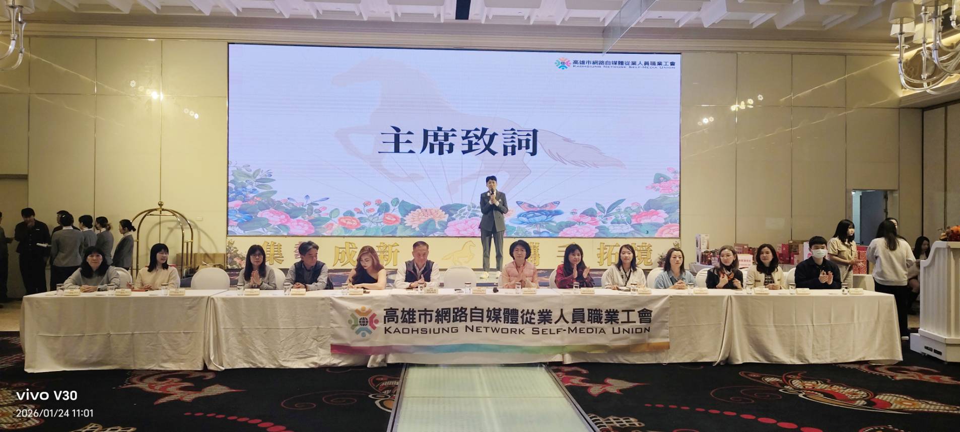 隨著數位內容成為公共溝通與產業發展的重要力量,自媒體從「個人創作」走向「專業產業」已成為不可逆的趨勢。高雄市網路自媒體從業人員職業工會,攜手社團法人中華民國產業永續發展策進會與高媒國際股份有限公司,於1/24(六)在高雄林皇宮舉辦「會員大會暨114歲末年終聯合感恩餐會」,以「集勢成新、攜手拓境」為主題,廣邀產官學界與創作者齊聚一堂。活動不僅回顧年度成果,也象徵南台灣自媒體產業正由分散走向整合、由個體邁向制度的新里程碑。