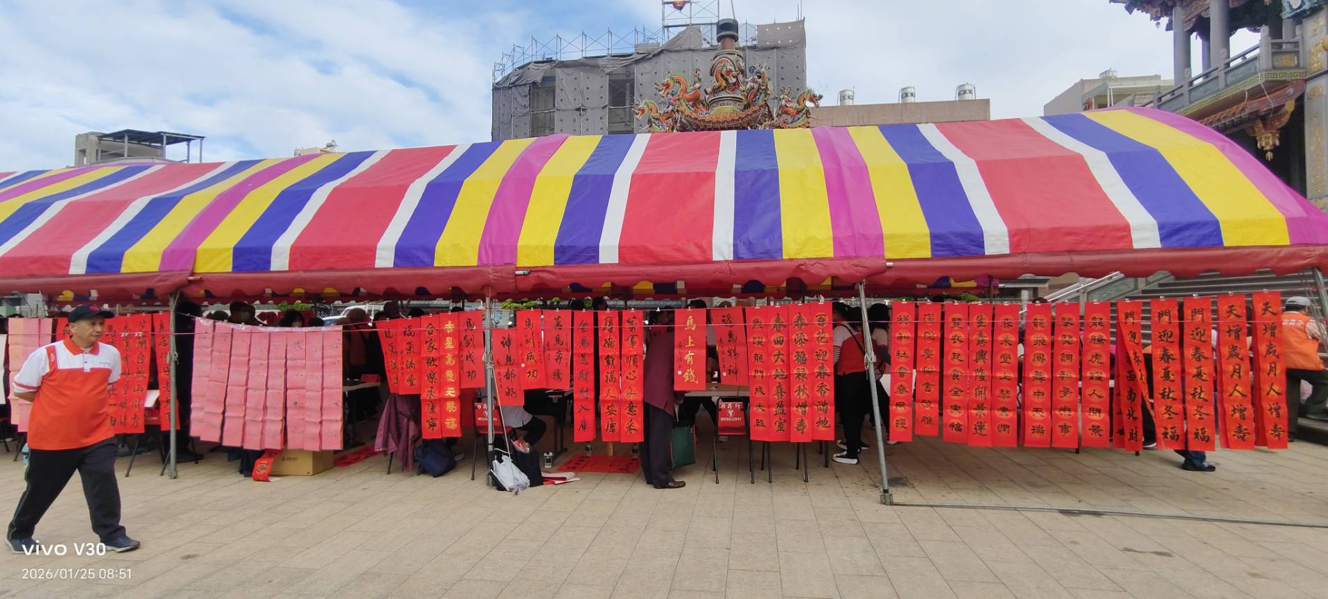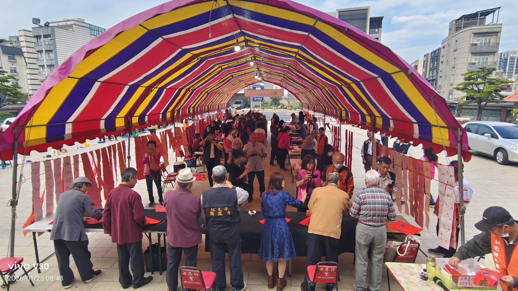 農曆新年前夕,高雄紅毛港朝鳳寺廟埕墨香四溢、喜氣洋洋。由高雄市煮雲慈善會攜手紅毛港朝鳳寺舉辦,高雄市議員 李順進 協辦的「新春揮毫贈春聯活動」,今(25)日溫馨登場,邀集30餘位書法與書畫藝術家現場揮毫,免費為民眾書寫春聯。活動以藝術為橋梁,結合公益關懷與文化傳承,不僅為社區迎來年節祝福,也讓傳統書法在日常生活中持續發聲,展現高雄民間社團長期深耕地方文化的溫柔力量。