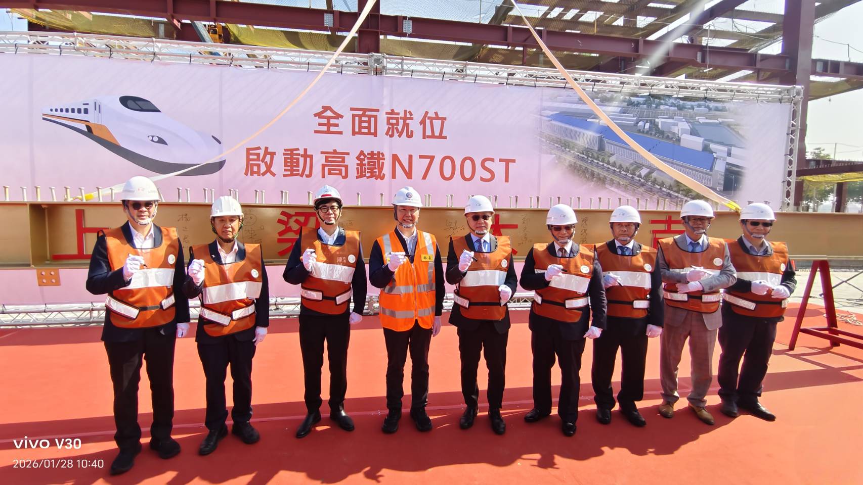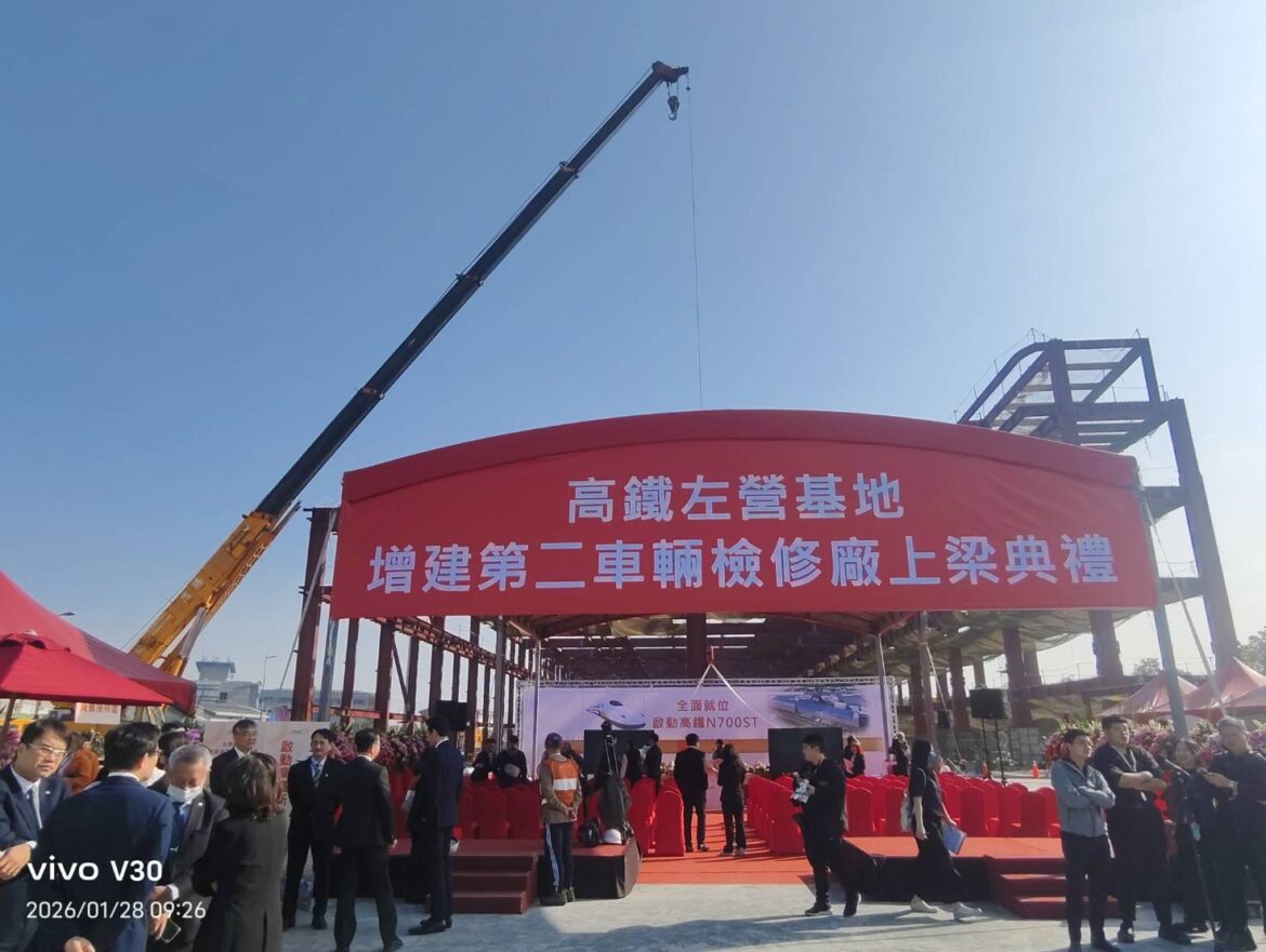 被視為N700ST在台「新家」的左營基地第二車輛檢修廠正式上梁,交通部長陳世凱、高雄市長陳其邁與台灣高鐵董事長史哲共同主持祈福儀式,見證高鐵系統升級的重要節點。此廠未來將成為新舊車隊整備核心,象徵高鐵營運從「既有穩定」邁向「規模擴張」的新階段。