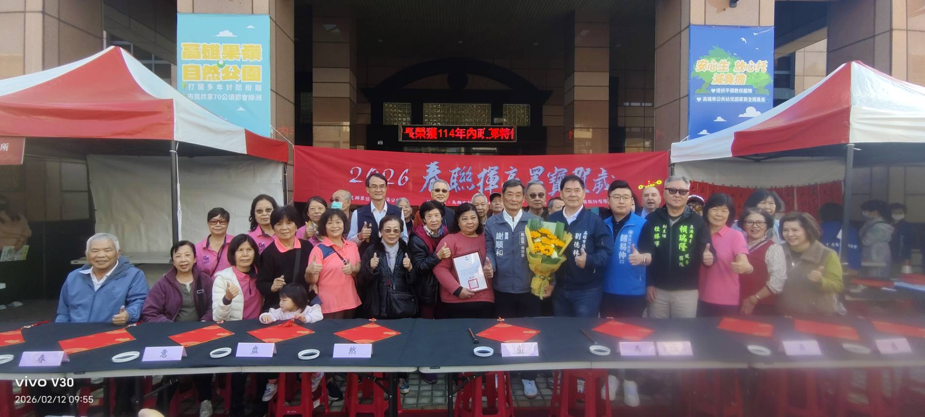 農曆新年腳步將近,高雄市鳳山區公所於2月12日在區公所廣場舉辦「2026春聯揮毫墨寶賀歲」活動,邀集書法名家現場揮毫,並結合英語互動與民眾體驗,讓傳統書藝走入生活。現場墨香四溢、笑聲不斷,不僅傳遞新春祝福,也展現社區文化凝聚力與跨文化交流的活力。